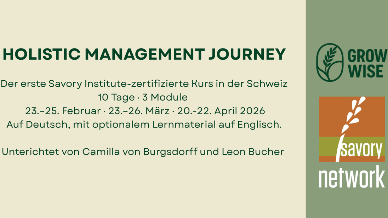 Der Holistic Management Journey ist der erste vollständig in Person durchgeführte, offiziell vom Savory Institute zertifizierte Kurs in der Schweiz.Über 10 Präsenztage an drei Standorten tauchen die Teilnehmenden tief in die Grundlagen, Werkzeuge und Anwendungen des Holistic Management ein – wissenschaftlich fundiert, praxiserprobt und vor Ort erlebbar. Dies ist kein Online-Kurs.Alle Module finden ausschließlich physisch vor Ort statt und kombinieren:– Unterricht im Seminarraum– praktische Übungen auf dem Land– Weideanalyse & Ökosystemprozesse im Gelände– Gruppenarbeit, Reflexion und Coaching– reale Fallstudien und sofortige Anwendung